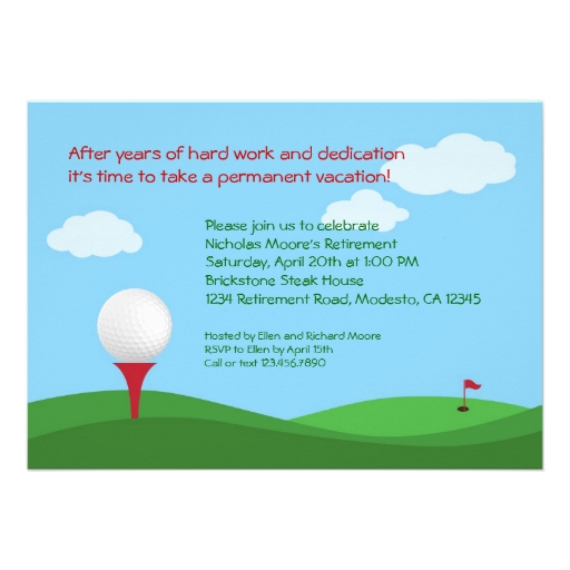 Golf Themed Retirement Party Invitations | Home Party Ideas from allhomeparty.com Inspect out these imaginative golf party ideas to help throw your golf enthusiast an awesome golf themed celebration #golfswing #golf. 3 help your colleague, loved one, or while a cake is a great idea for the retirement party, it isn't necessarily a gift. Make a small hammock for the gifts of hero of the occasion. A margaritaville themed party is easy to arrange. Try these creative ideas to make your next soiree a retirement affair to remember. See more party ideas at catchmyparty.com. See more ideas about retirement parties, golf birthday, golf party. 1196 x 1600 jpeg 346 кб.